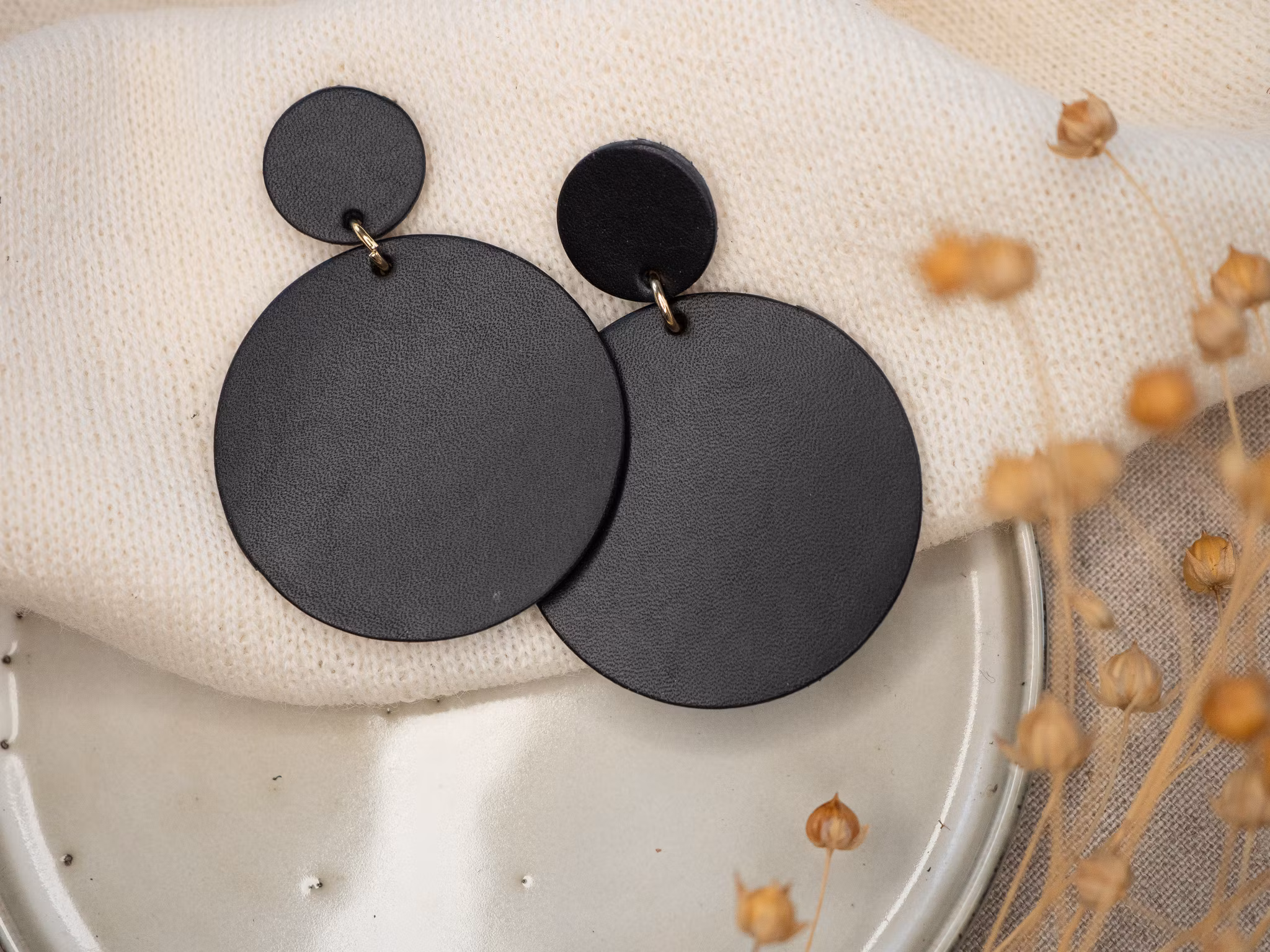 stora cirkeln är ca 5cm i diameter och örhänget är ca 7cm långt